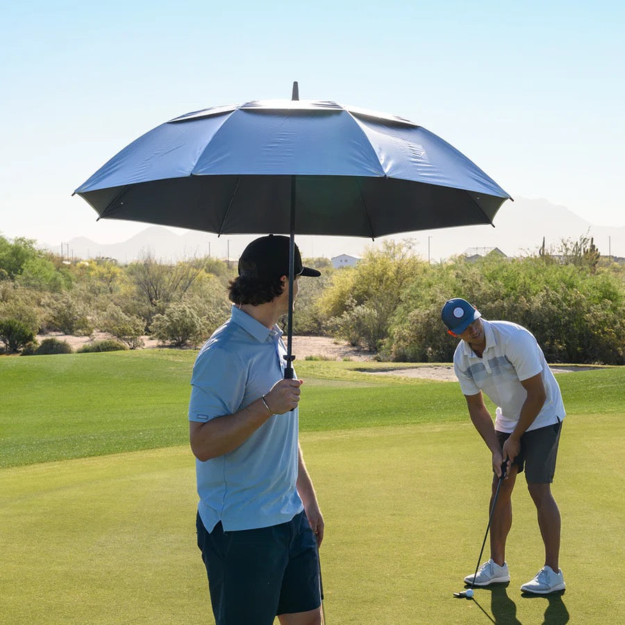 Introducing the Haas-Jordan 62" UV-Blocking Golf Umbrella, an essential accessory for every golfer who values both style and protection. Available now at the Edison Golf Online Pro Shop, this premium umbrella boasts a generous 62-inch canopy, providing ample coverage for you and your gear against the elements.