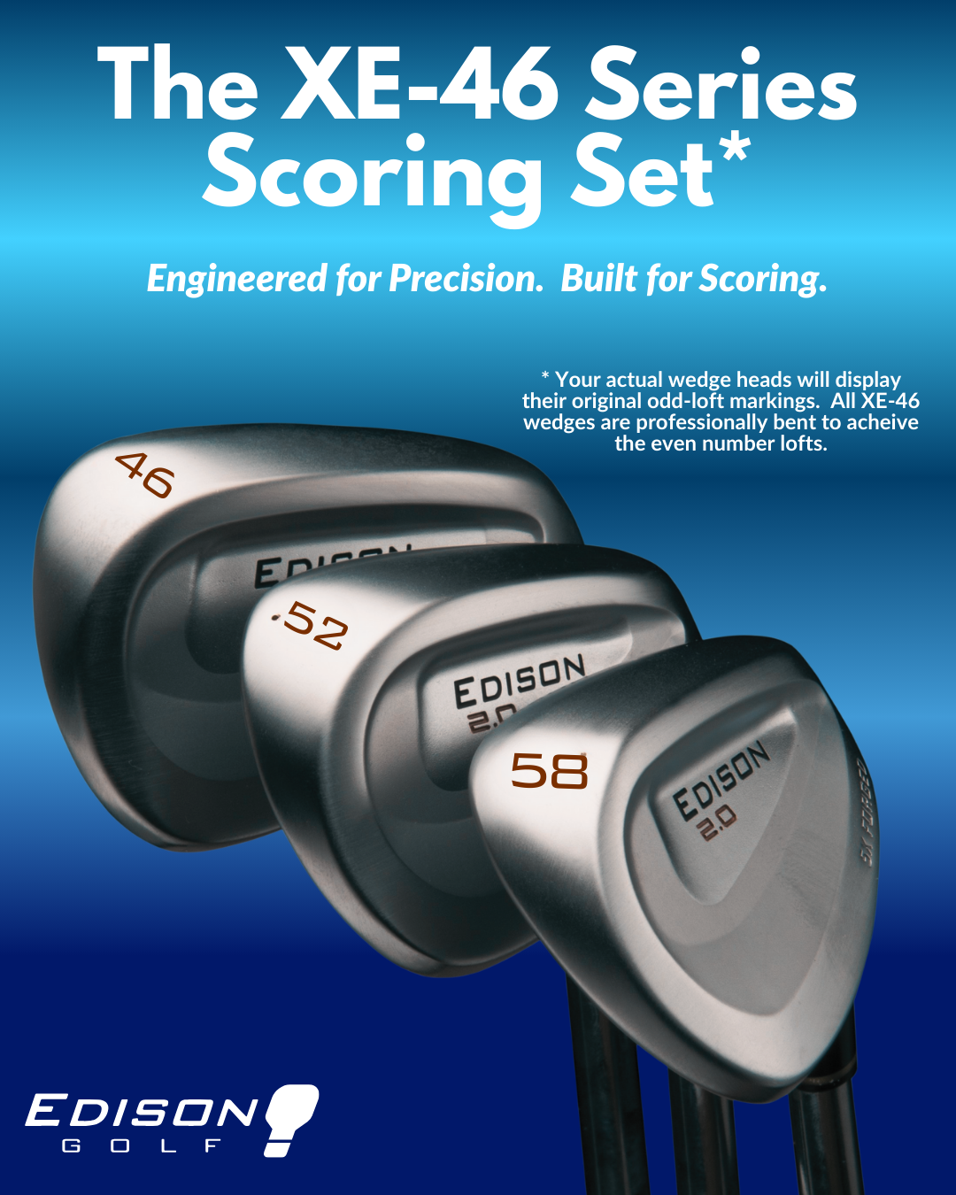 Take control of your short game with the Edison XE-46 Series — a three-wedge system built around even-degree lofts for perfectly balanced transitions, engineered with the proven performance of Edison 2.0 technology.