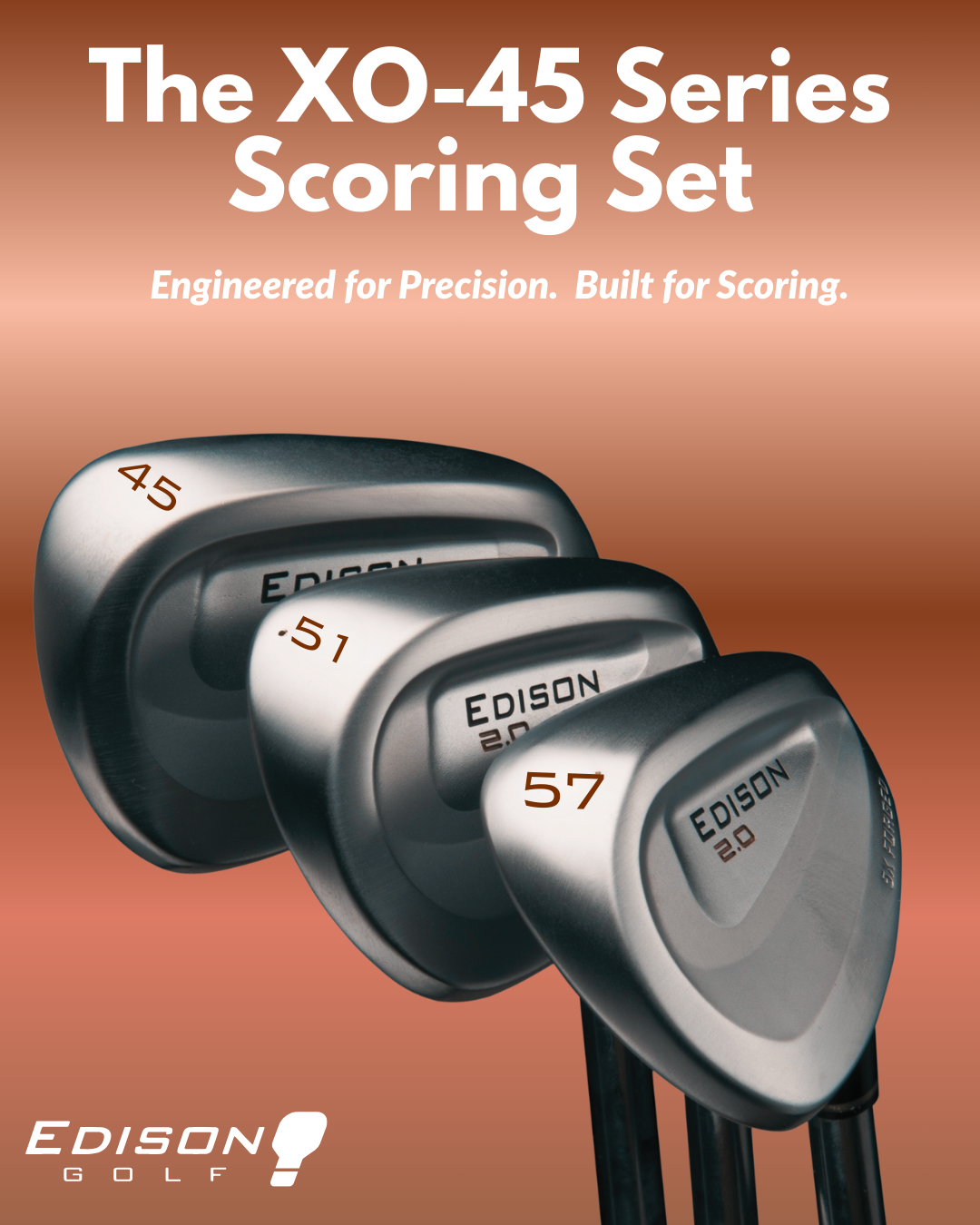Unlock your scoring potential with the Edison XO-45 Series — a three-wedge system built around clean, traditional odd-degree lofts and elevated by the advanced performance of Edison 2.0 engineering.